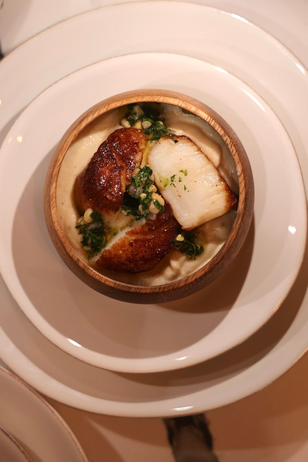 Pan-Seared Sea Scallop · Cauliflower Purée · Parsley & Walnut Gremolata · Lemon Vinaigrette